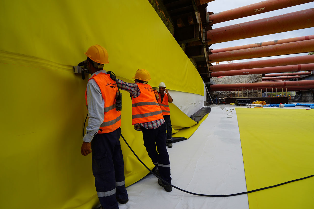 Proje kapsamında yalıtım olarak kullanılan sistemelerin başında Sentetik PVC örtüler gelmekte,bunu yanında Bitümlü membran,Su Tutucu bant,Enjeksiyon sistemleri olmak üzere bir çok sistem uygulanmaktadır.